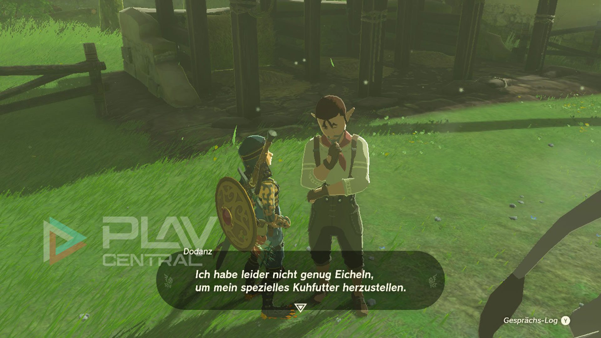 Solltet ihr nicht bereits mindestens drei Eicheln in eurem Besitz haben, müsst ihr nun also in den erwähnten Wald hinter dem Hof von Dodanz laufen und dort nach dem Futter für die Kühe suchen.