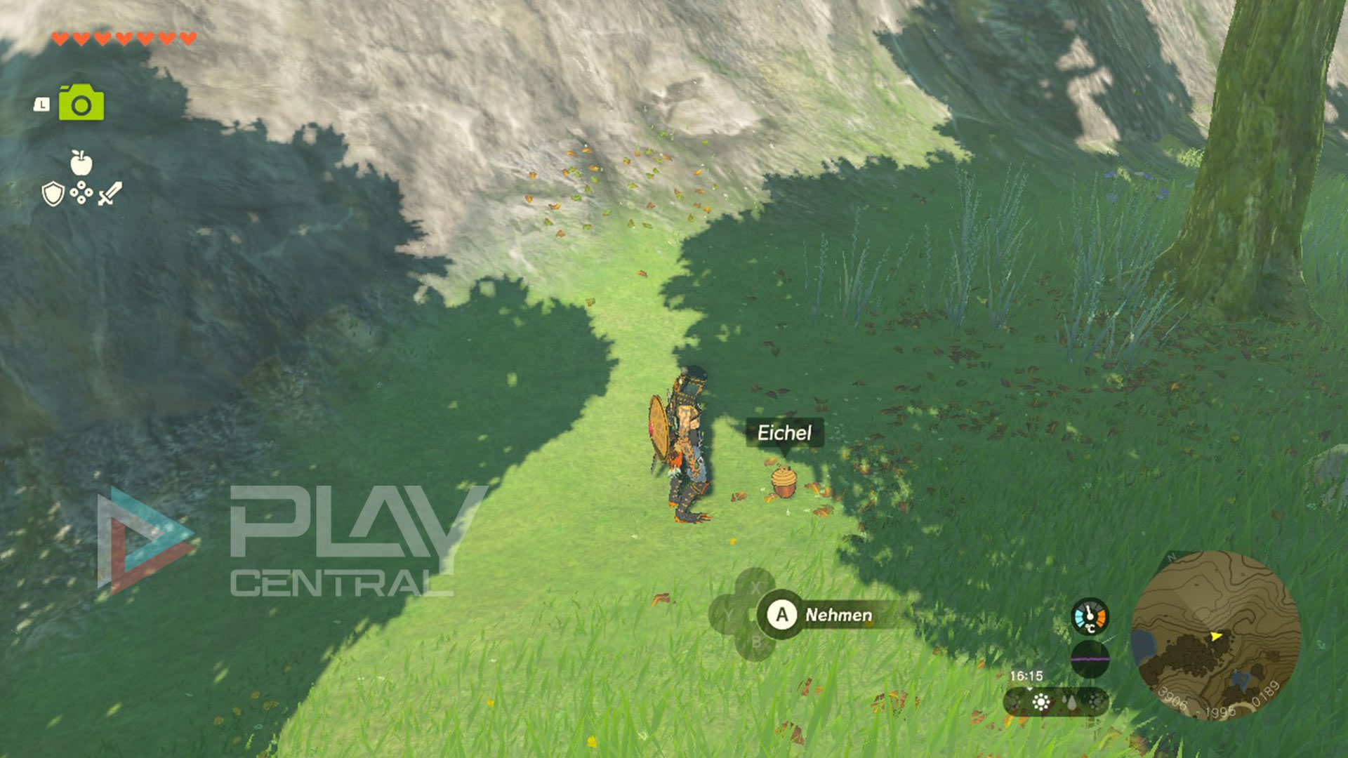 Hier befinden sich einige Frechhörnchen, deren Name Programm ist. Die Nager sind ziemlich flink und verschwinden gerne mal in Baumlöchern. Schleicht euch am besten an sie heran und nutzt dann den Bogen. Jedes erlegtes Eichhörnchen lässt jeweils eine Eichel fallen. Summa summarum müsst ihr also nur drei von ihnen erledigen. Alternativ könnt ihr auch Bäume fällen, wenn euch die Jagd zu anstrengend ist.