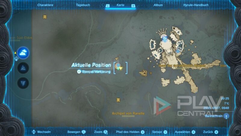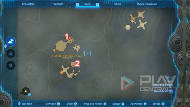 Der nächste Segen befindet sich im Himmel über Akkala. Nutzt den Turm auf dem Ulri-Berg, um in die Luft zu steigen. Etwas weiter östlich gibt im Norden von Archipel von Süd-Akkala gibt es eine Plattform, die unseren zuvor erwähnten Helikopter beinhaltet. Mit dem Gleiter geht es also erst einmal hier hin und dann fliegt ihr mit dem Helikopter weiter zum Zielpunkt.