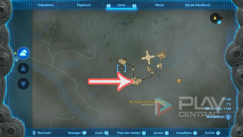 Diesen Willen erhaltet ihr im Archipel von Eldin. Es geht also zum Turm in der Schlucht von Eldin und von hier aus in die Luft. Den exakten Punkt findet ihr hier auf der Karte. Gleitet erst einmal gen Süden.