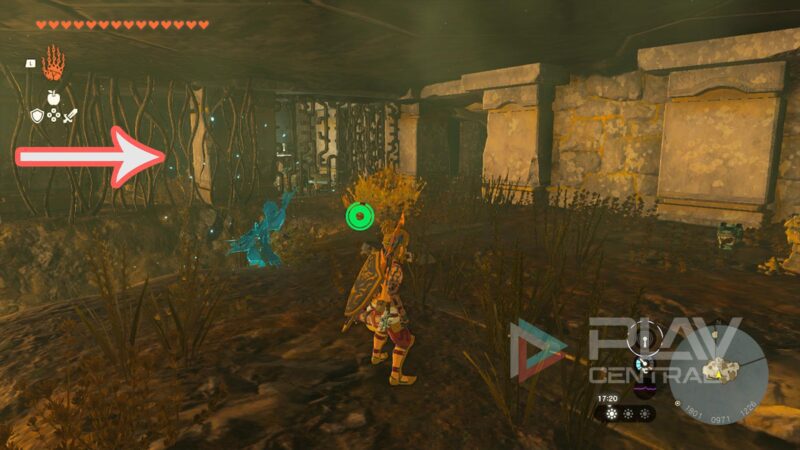 Doch das gute Stück wurde hinter einigen Ranken versteckt (siehe Bild). Durch dieses Hindernis können wir uns einfach von links durcharbeiten. Sammelt den Segen im Anschluss ein. Fallt dabei nur nicht von der Insel. Speichert am besten ab, wenn ihr oben auf der Insel steht, bevor ihr dann heruntergleitet und weitermacht.