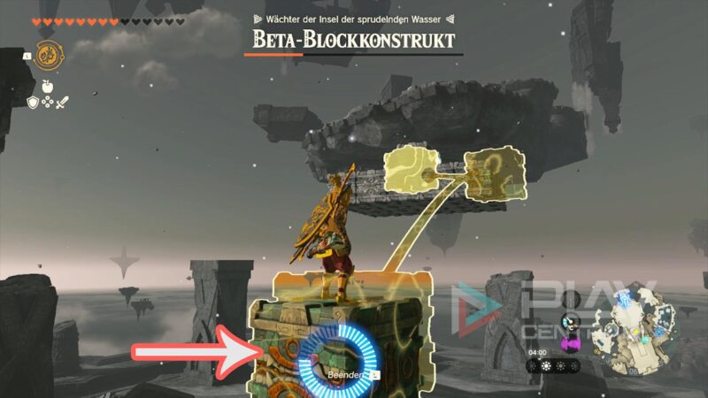 Es folgen ein paar Tipps für den Kampf: Ein Blockkonstrukt ist gar nicht so schwer, wenn man weiß, wie man vorgehen muss. Zielt immer auf den grün leuchtenden Energiekern mit der Ultra-Hand und wackelt so lange herum, wie ihr könnt.