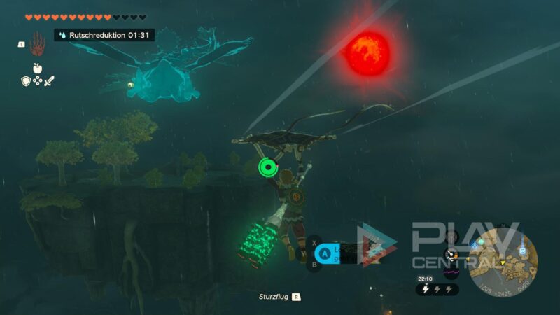 Ihr könnt einen kleinen Zwischenstopp auf der oberen Insel machen. Oben auf der Insel sehen wir nicht viel, deshalb geht es direkt weiter. Springt im Norden ab und gleitet bis zum linken Ende des Schlangenkopfes. Also quasi zur Unterlippe. Hier findet ihr dann relativ offen eine Truhe mit dem Willen.