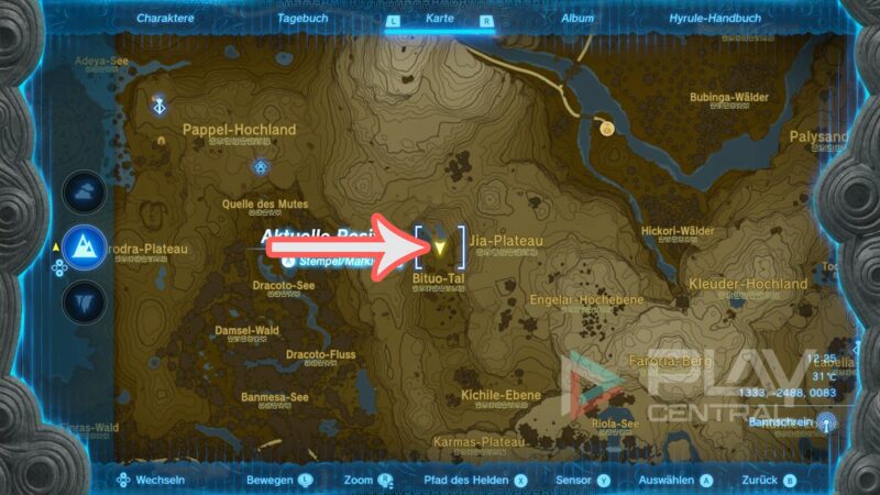 Es öffnet sich ein geheimer Eingang und es geht nach unten. Auch hier müsst ihr das Sonau-Relikt weiterhin mitnehmen. Das ist der Abgrund am Bituo-Tal. Legt das Relikt schließlich auf die runde Plattform, dann fährt sie nach unten.